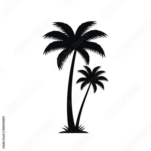 Obraz premium Palm tree silhouette illustration with arching fronds on a white background....