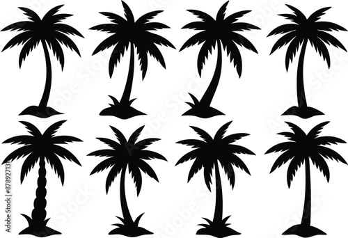© Trendy CraftSVG , Obraz premium Palm tree Silhouette Set, set of black silhouettes of a palm tree, silhouette of a palm tree isolated