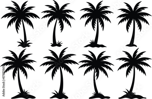 © Trendy CraftSVG , Obraz premium Palm tree Silhouette Set, set of black silhouettes of a palm tree, silhouette of a palm tree isolated