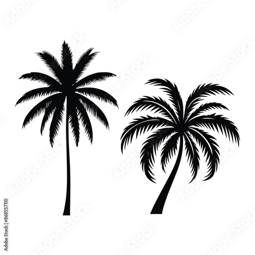 Obraz premium Palm Tree Silhouette, Silhouette Palm Tree. Black palm trees set isolated on white background.