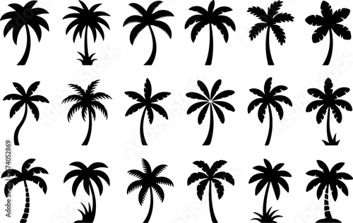 © Rajon, Fototapeta premium "Palm Tree Silhouette SVG Bundle | Tropical Beach Vacation Clipart for Summer Designs"