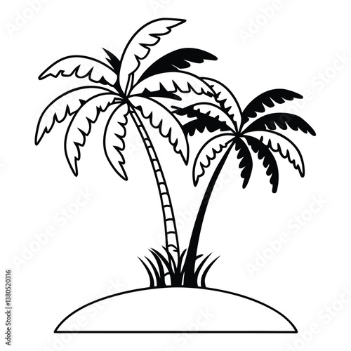 © Jihad, Obraz premium Palm Tree Silhouette Vector - High-Quality Isolated Design