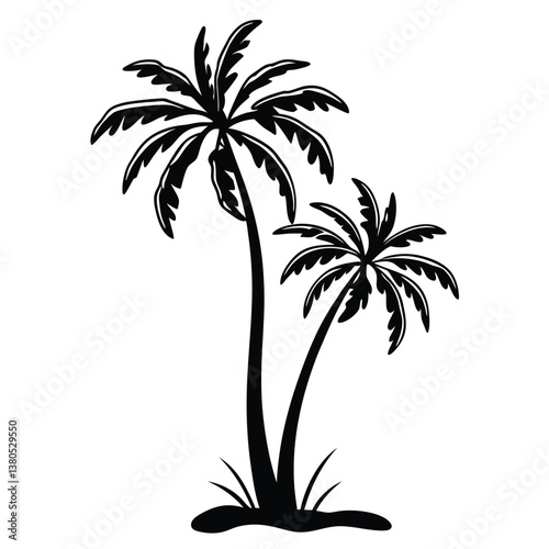 © Jihad, Obraz premium Palm Tree Silhouette Vector - High-Quality Isolated Design