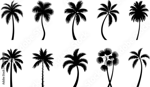 Fototapeta premium Palm Tree Silhouette Vector Set – Tropical Summer Island Icons