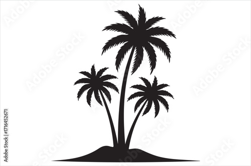 © Shapona, Obraz premium Palm tree silhouette vector set, tropical tree icon design, beach palm clipart, summer tree illustration, coconut tree collection, black palm drawing