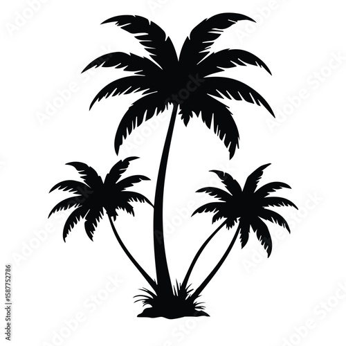 © Touseef, Fototapeta premium Palm tree silhouettes in a tropical setting. Silhouetted palm trees stand in a cluster against a white background. Tropical vegetation + graphic design for print use. General use.