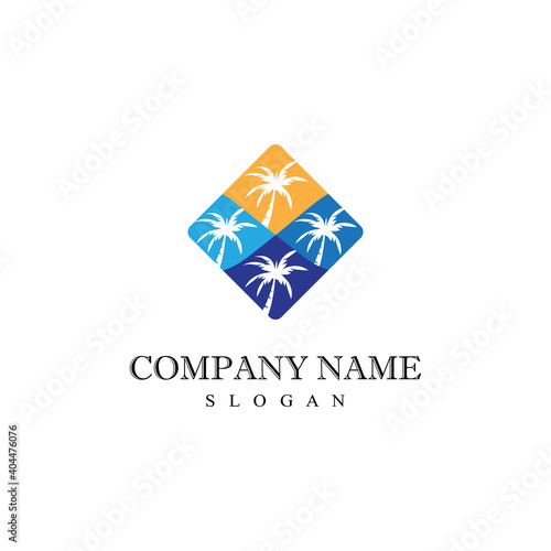Naklejka premium Palm tree summer logo template vector illustration