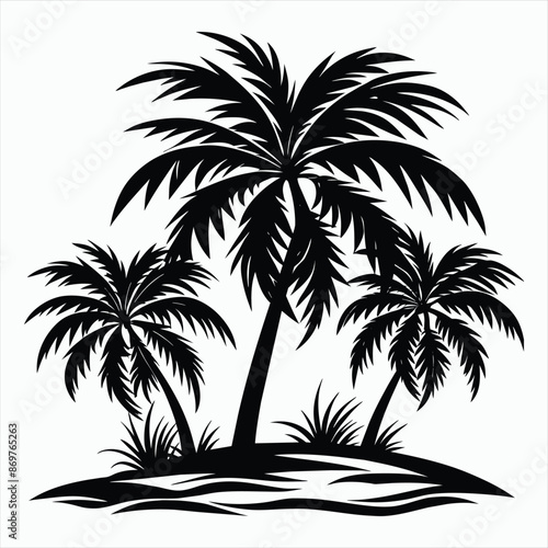 © jubd247, Obraz premium Palm Tree Tranquility Silhouette Art