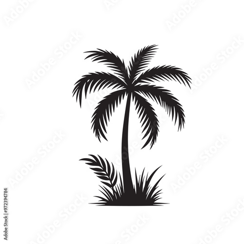 © rashel, Fototapeta premium Palm tree vector logo, icon. Palm tree silhouette. Palm tree vector design black and white.