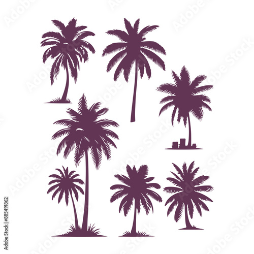 © Never Look Back, Obraz premium Palm Tree vector Palm tree silhouette Coconut tree vector silhouette symbols vector isolated on White background, Design of palm trees for posters, banners and promotional items. Vector illustration
