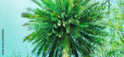 Obraz premium Palm Tree With Blue Sky Background.