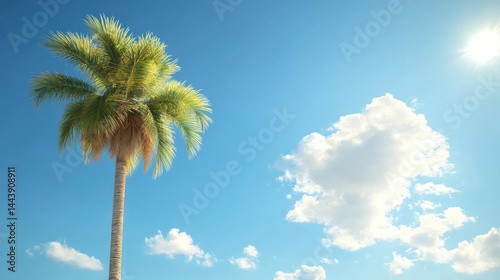© Irfanan, Fototapeta premium Palm Tree with Sunny Sky, and Vacation.