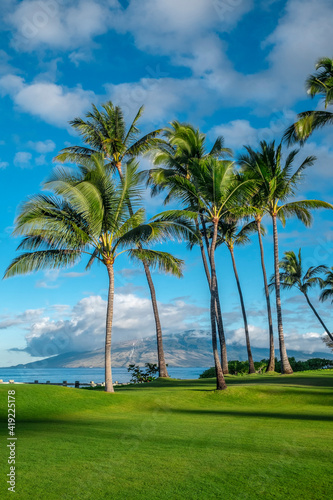 Obraz premium Palm trees along ocean, Wailea, Maui, Hawaii, USA.