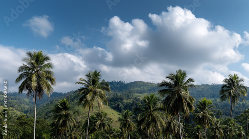 © Vika art, Fototapeta premium Palm trees and blue sky.
