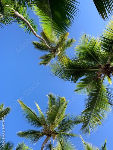 © Mike, Fototapeta premium Palm trees and sky in Carribean