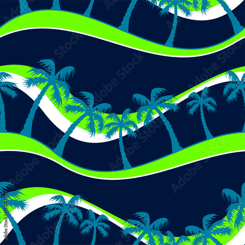 Obraz premium Palm trees and waves seamless pattern