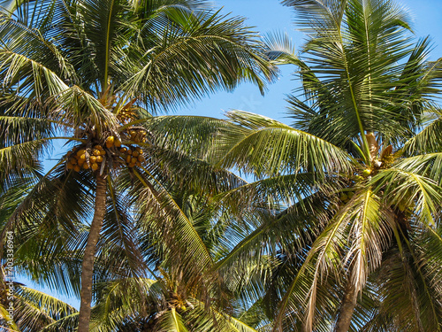 © Natalia Terenteva, Obraz premium Palm trees low view background