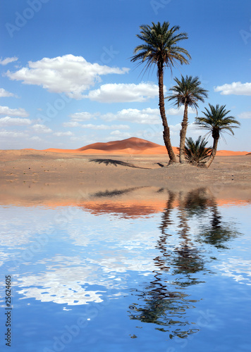 © Vladimir Wrangel, Fototapeta premium Palm Trees near the Lake in the Sahara Desert