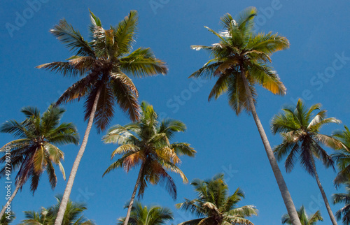 © Dulho Prado, Obraz premium palm trees on blue sky background