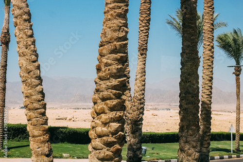 © Shopping King Louie, Obraz premium Palm trees on the background of the city