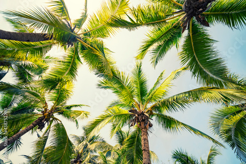 © Stockbym, Fototapeta premium Palm trees on the tropical beach