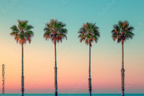 © Mandeep, Obraz premium Palm Trees Silhouette at Sunset