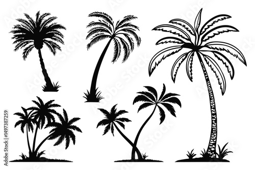 © Jhalak, Obraz premium Palm trees silhouettes vector set