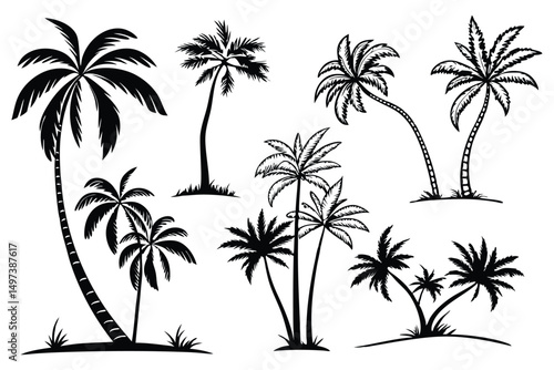 © Jhalak, Obraz premium Palm trees silhouettes vector set