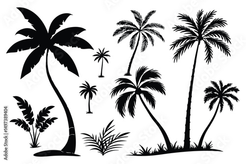 © Jhalak, Obraz premium Palm trees silhouettes vector set