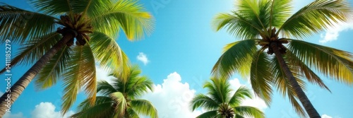 © Kachaphot, Obraz premium Palm trees sway gently in the tropical breeze, beach, tropical