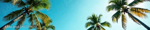 Fototapeta premium Palm trees sway gently in the tropical breeze, sunny, blue sky