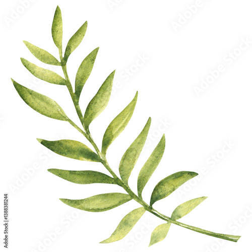 Fototapeta premium Palm Tropical green Leaf. Watercolor Hand drawn floral illustration isolated on a white background. Design element for pattern, logo or decoration.