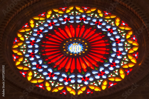 Obraz premium Palma de Mallorca. Colorful rosette of the interior of the Cathedral