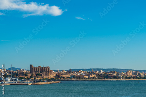 Obraz premium Palma de Mallorca harbour view with cruise ships and the cathedral in background