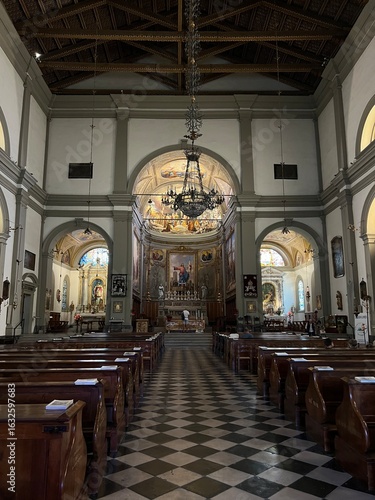 Fototapeta premium Palmanova, Italy - July 15, 2025: Interior view of historic church featuring...