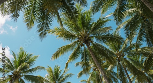 © eric.rodriguez, Fototapeta premium palmeras en verano en una playa de méxico