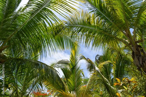© andrea, Fototapeta premium Palms Blue Sky Islands Vacation