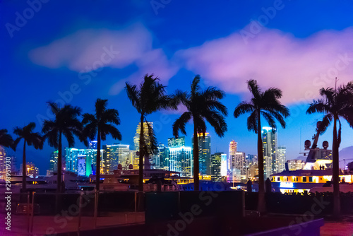 Obraz premium Palmy i drapacze chmur w Miami w nocy