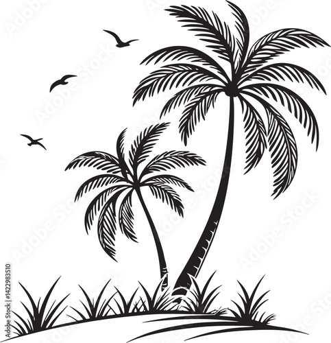 Obraz premium Palmyra Palm tree silhouette vector illustration
