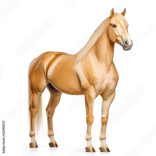 © Kettisak, Obraz premium Palomino Horse Studio Portrait Against White Background