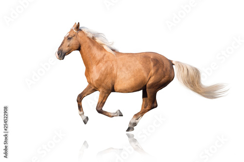 Obraz premium Palomino horse with long mane run gallop isolated on white