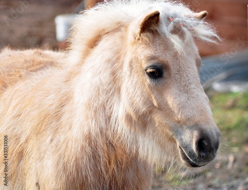 © Дина Попова, Fototapeta premium Palomino pony with a winter fluffiness