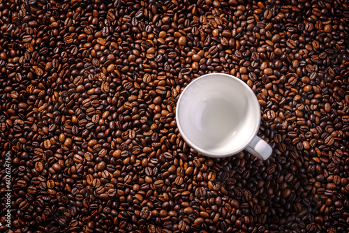 Fototapeta premium Palone ziarna kawy z filiżanką
