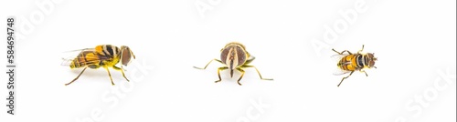 © Chase D’Animulls, Fototapeta premium Palpada agrorum - the Double banded Plushback - three views isolated on white background with pollen all over it