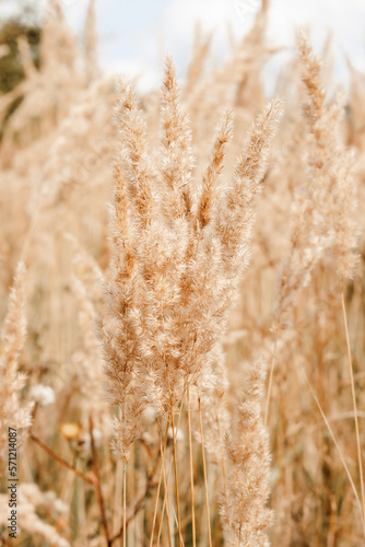 Fototapeta premium Pampas grass growing in field, brown tone, nature inspiration, aesthetic poster