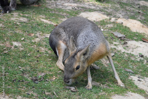 Fototapeta premium Pampas hare running around on a green meadow, Animal Park Bretten, Germany