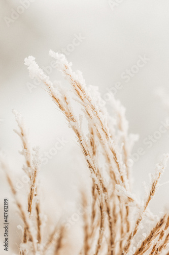 © Ines, Fototapeta premium Pampasgras im Winter mit Eiskristallen, Minimalistisches Wandbild