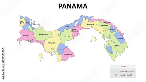 Fototapeta premium Panama Map. State map of Panama. State map of Panama in colour with capital.