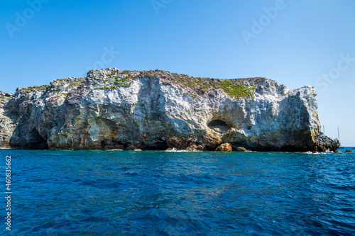 © Giongi63, Fototapeta premium Panarea island (Aeolian archipelago), Lipari, Messina, Sicily, Italy: view of the rocky coast of "Lisca Bianca" island.