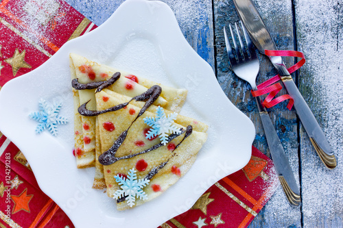 Fototapeta premium Pancake Christmas tree funny breakfast or dessert